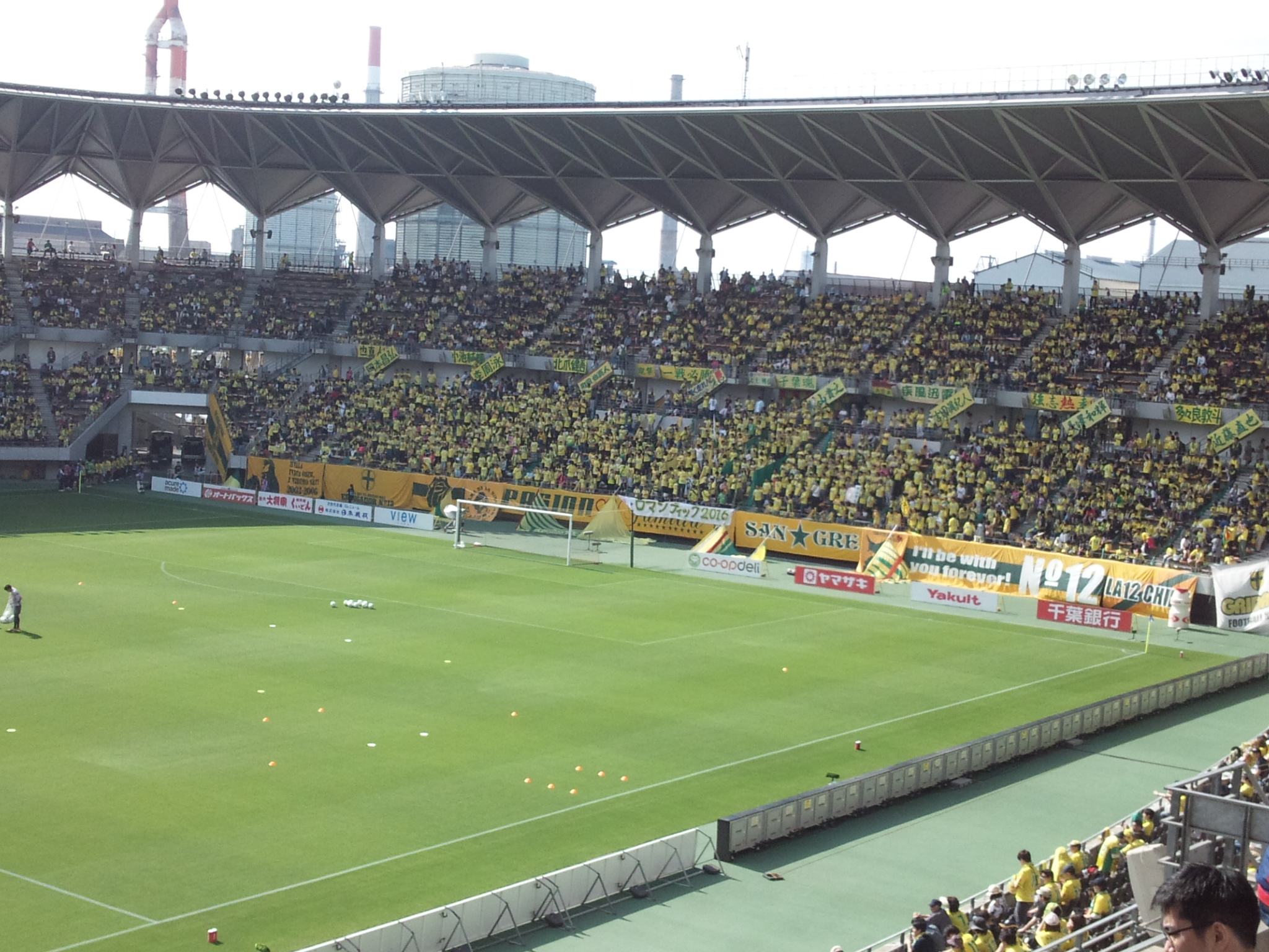 熊本地震発生から約1ヶ月。この間J2ロアッソ熊本はリーグ戦の試合が中止となり、この日再開初戦がフクアリでの千葉戦。いてもたってもいられず、初めてのホームフクアリ観戦を敢行。キックオフ約2時間前に現地に到着し、ソーセージ盛りで腹を満たしてから入場。SA自由席を前売りで購入していたので、バックスタンドアウェイ寄りの2階席に席を確保。スピーカーからの音だけでなくコールや拍手の音が屋根に響きいい感じ。背中から足元を吹き抜ける風が強く、かつ冷たく、パーカーを腰から下に巻いて防寒。試合前、ジェフサポ側から「くまもと」コール、それに応えるようにロアッソサポから「サンキューちば」コール。これだけでも涙腺がゆるむ。16時03分定刻にキックオフ。